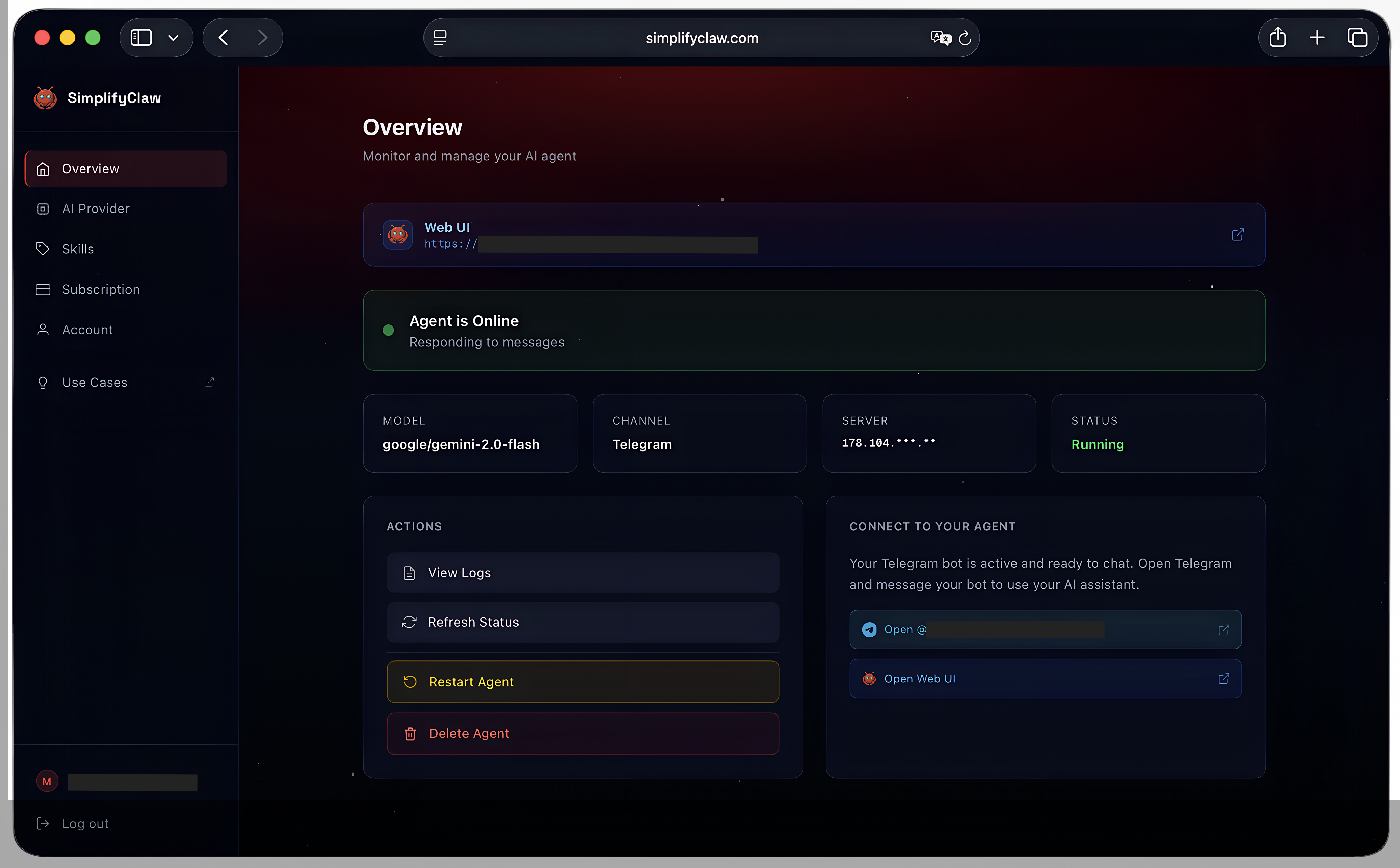 @marcusbuildsβThe web dashboard is what sold me. I can see what my agent is doing, swap models, check uptime β all from a browser tab. No SSH.β